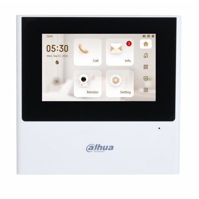 Dahua DHI-VTH2611L-WP монитор видеодомофона IP 4.3 дюймовый с WiFi 2.4ГГц. 480 x 272 разрешение, ёмкостной сенсорный экран; аудио входы / выходы: 1/1, динамик тревожные входы / выходы 4/1; LAN. Возможность просмотра IP видеокамер. Питание: DC 12В/PoE. Габаритные размеры: 136 мм × 140 мм × 25.5 мм; Установка - на стену.
